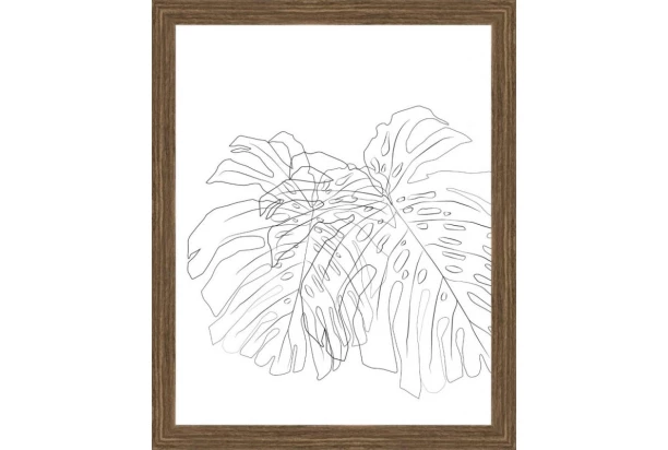 Obraz v drevenom hnedom ráme zaujme moderným dizajnom a motívom vychádzajúceho zo škandinávskeho štýlu. Jednoduché listy kreslené linkou vyžarujú pokoj a pohodu. Kombinácia s ďalšími obrazmi škandinávskeho štýlu vytvorí na stene originálnu koláž. Rozmer 20×25 cm.