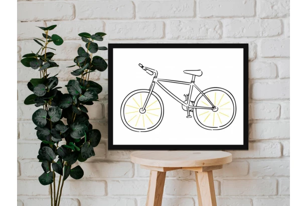 Obraz v drevenom čiernom ráme s jednoduchým kresleným motívom bicykla poteší každého cyklistu. Kombinácia s ďalšími obrazmi škandinávskeho štýlu vytvorí na stene originálnu koláž. Rozmer 40×30 cm.
