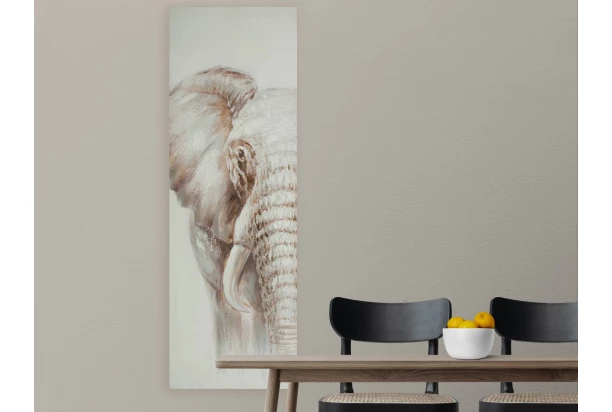 Ručne maľovaný obraz na stenu sa stane jedinečnou dekoráciou vašej domácnosti. Umelecký originál s moderným zvieracím motívom slona zútulnia a rozžiaria každý interiér. Rozmer 40×120 cm.