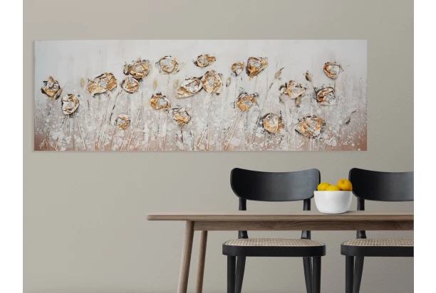 Ručne maľovaný obraz na stenu s 3D štruktúrou povrchu sa stane jedinečnou dekoráciou vašej domácnosti. Umelecký originál s motívom kvetín ,zútulni a rozžiari každý interiér. Rozmer 40×120 cm.