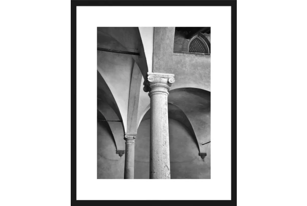 Zarámovaný obraz v drevenom čiernom ráme s motívom architektúry je vyrobený technikou fototlače. Jednoduché, ale elegantné čiernobiele prevedenie obrazu dodá Vášmu interiéru výnimočnú atmosféru. Rozmer 40×50 cm.