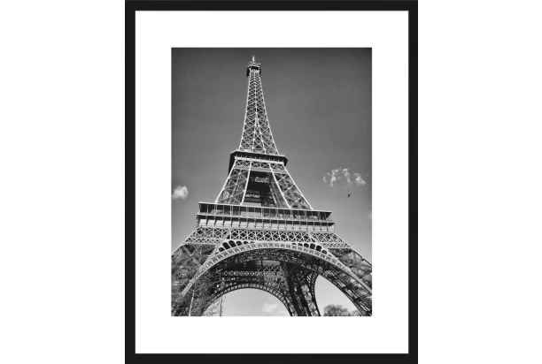 Zarámovaný obraz v drevenom čiernom ráme s motívom Eiffelova veža je vyrobený technikou fototlače. Jednoduché, ale elegantné čiernobiele prevedenie obrazu dodá Vášmu interiéru výnimočnú atmosféru. Rozmer 40×50 cm.