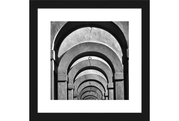 Zarámovaný obraz v drevenom čiernom ráme s motívom klenieb je vyrobený technikou fototlače. Jednoduché, ale elegantné čiernobiele prevedenie obrazu dodá Vášmu interiéru výnimočnú atmosféru. Rozmer 20×20 cm.