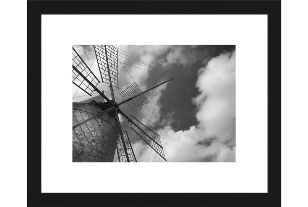 Zarámovaný obraz v drevenom čiernom ráme s motívom veterného mlynu je vyrobený technikou fototlače. Jednoduché, ale elegantné čiernobiele prevedenie obrazu dodá Vášmu interiéru výnimočnú atmosféru. Rozmer 20×25 cm.