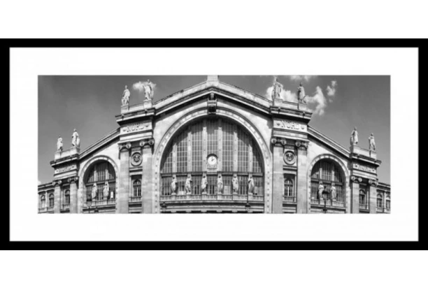 Zarámovaný obraz v drevenom čiernom ráme s motívom vlakovej stanice Gare du Nord v Paríži je vyrobený technikou fototlače. Jednoduché, ale elegantné čiernobiele prevedenie obrazu dodá Vášmu interiéru výnimočnú atmosféru. Rozmer 80×40 cm.