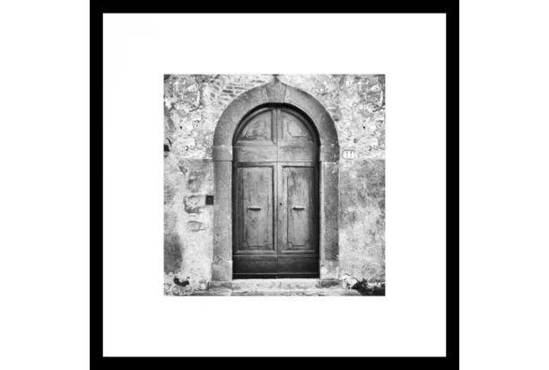 Zarámovaný obraz v drevenom čiernom ráme s motívom starých oblúkových dverí je vyrobený technikou fototlače. Jednoduché, ale elegantné čiernobiele prevedenie obrazu dodá Vášmu interiéru výnimočnú atmosféru. Rozmer 50×50 cm.