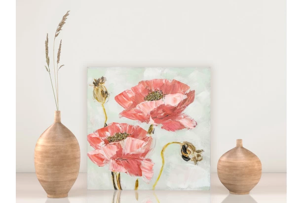 Ručne maľovaný obraz na stenu sa stane jedinečnou dekoráciou vo vašej domácnosti. Umelecký originál s prírodným motívom vlčích makov, zútulni každý interiér. Rozmer 30×30 cm.