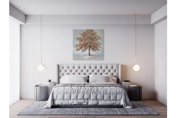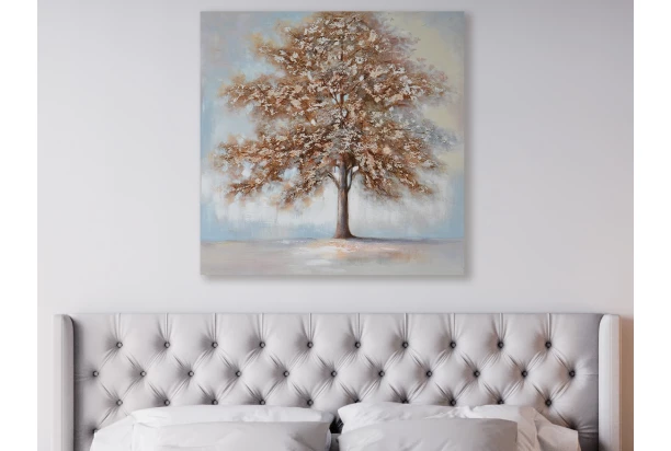 Ručne maľovaný obraz na stenu s výraznou štruktúrou povrchu sa stane jedinečnou dekoráciou vo vašej domácnosti. Umelecký originál s prírodným motívom stromu v modernom spracovaní,príjemne zútulní každý interiér. Rozmer 100×100 cm.