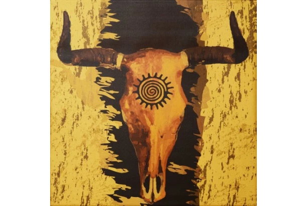 Štýlový obraz v boho štýle je tlačený na špeciálnom zlatom plátne vo vysokej kvalite. Motív býčej lebky s etnickým vzorom oživí každú miestnosť a dodá jej zaujímavý šmrnc. Rozmer 65×65 cm.