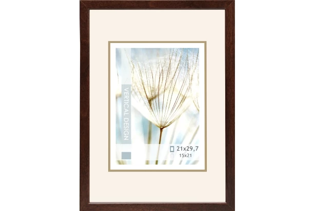 Drevený fotorámik v tmavo hnedej farbe je ideálny pre fotografiu o rozmere 21×29,7 cm. Rámček je možné postaviť pomocou opierky na stôl, komodu, policu alebo zavesiť na stenu.