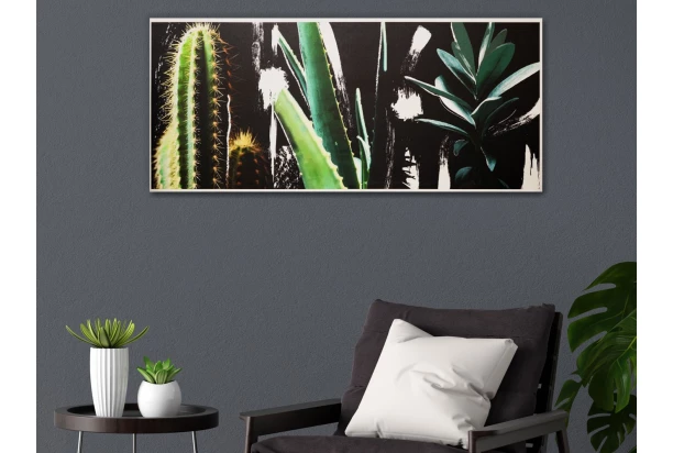 Štýlový obraz v boho štýle je tlačený na špeciálnom plátne vo vysokej kvalite. Motív kaktusov skvele oživí každú miestnosť. Rozmer 150×65 m.