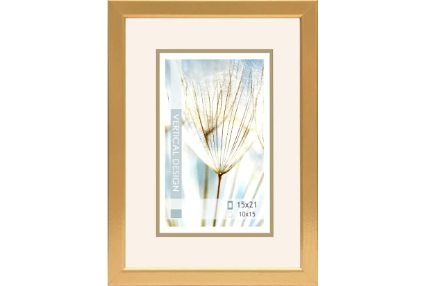 Drevený fotorámik v zlatej farbe je ideálny pre fotografiu o rozmere 15×21 cm. Rámček je možné postaviť pomocou opierky na stôl, komodu, policu alebo zavesiť na stenu.