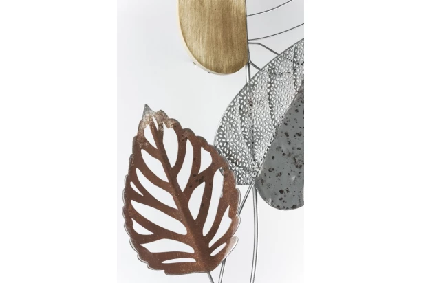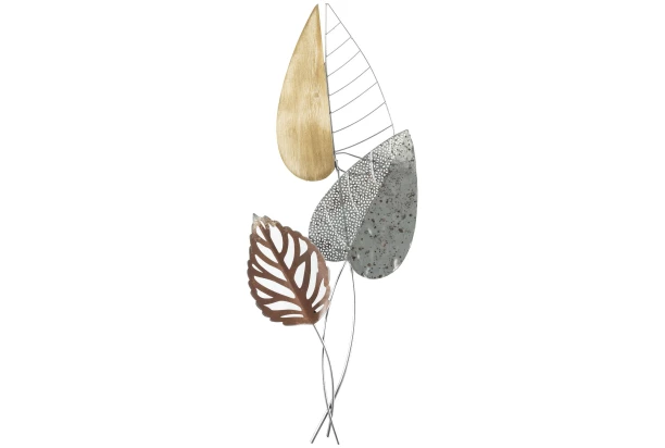 Abstraktná kovová nástenná dekorácia predstavuje úžasnú kompozíciu 3 rôznych listov. Vkusná a estetická 3D ozdoba s ručnou povrchovou úpravou pôsobí luxusným dojmom a rýchlo sa stane stredobodom pozornosti vo Vašom interiéri. Svojím farebným a elegantným dizajnom dokonale zapadne do moderného štýlu bývania, do ktorého vnesie útulnosť, originalitu a osobitosť.