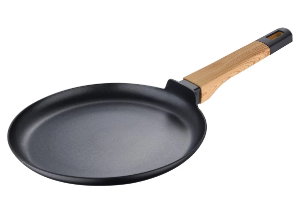Štýlová panvica je vyrobená z lisovaného hliníka a má ergonomicky tvarovanú rukoväť v imitácii dreva. Oceníte predovšetkým nepriľnavý povrch, veľmi rýchly ohrev a udržanie teploty. S touto panvicou pripravíte tie najchutnejšie palacinky. Priemer 24 cm.