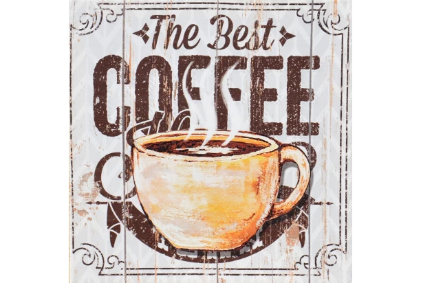 Obraz tlačený na plátne The Best Coffee o rozmere 28×28 cm oživí každý interiér a poteší všetkých milovníkov kávy.