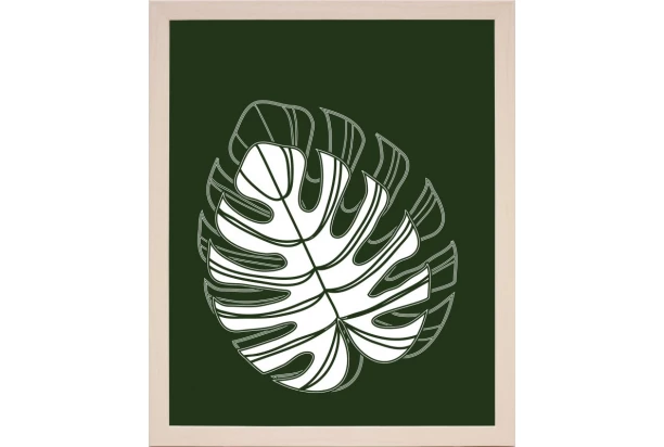 Obraz v drevenom ráme s nádychom škandinávskeho a boho štýlu je inšpirovaný prírodou, ktorá dodáva uvoľnenú atmosférou. Motív tropický list na zelenom pozadí evokuje pocit pohodlia a umožní Vám vytvoriť útulný domov. Nástenná dekorácia sa skvele hodí ako moderný doplnok do obývacej izby, spálne alebo domácej pracovne. Rozmer 24×30 cm.