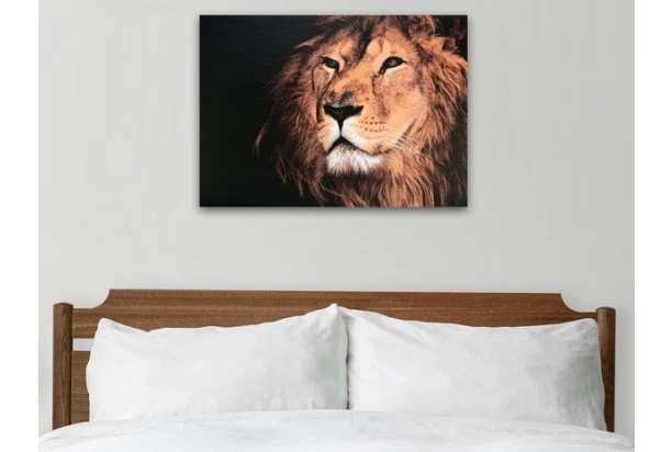 Obraz tlačený na plátne s motívom leva sa bude skvele vynímať na každej stene. Pôsobivý obraz môžete zavesiť do obývacej izby, spálne alebo kamkoľvek inam. Rozmer 70×50 cm.