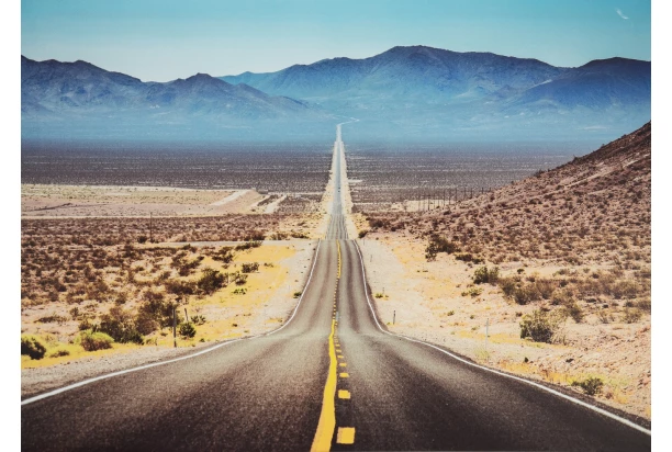 Obraz tlačený na plátne s motívom cesty vedúcej do Death Valley National Park v púštnej oblasti Spojených Štátov poteší každého cestovateľa. Rozmer 70×50 cm.