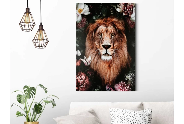 Krásny obraz tlačený na plátne s motívom leva v kvetoch sa stane skutočným pútačom a okamžite oživí každý interiér. Rozmer 60×80 cm.