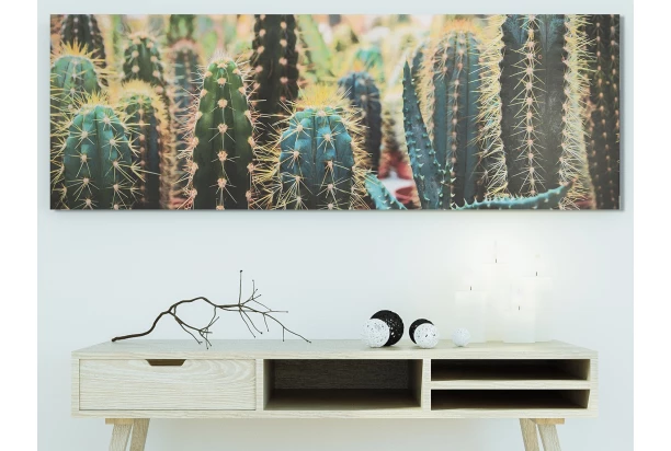 Panoramatický obraz tlačený na plátne s motívom kaktusov dotvorí jedinečnú atmosféru domova. Rozmer 150×50 cm.