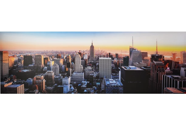 Panoramatický obraz tlačený na plátne s motívom veľkomesta, dotvorí jedinečnú atmosféru domova. Rozmer 150×50 cm.