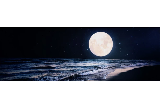 Panoramatický obraz tlačený na plátne s motívom splnom na nočnej oblohe, dotvorí jedinečnú atmosféru domova. Rozmer 150×50 cm.