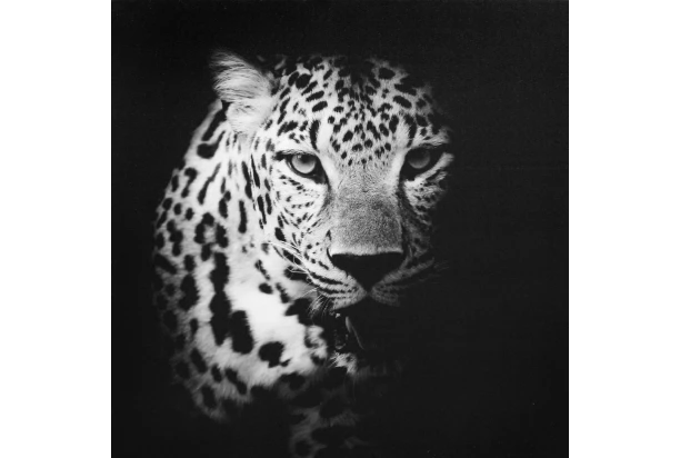 Čiernobiely obraz tlačený na plátne s motívom pôsobivého leoparda sa stane elegantnou dekoráciou, ktorá dotvorí jedinečnú atmosféru domova. Rozmer 50×50 cm.