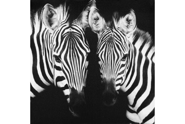 Čiernobiely obraz tlačený na plátne so zebrami dokonale ozvláštni Váš interiér. Rozmer 50×50 cm.