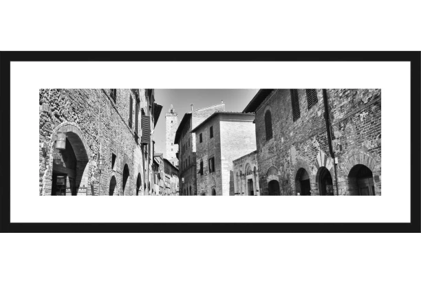 Zarámovaný obraz v drevenom čiernom ráme s motívom malej ulice s domami je vyrobený technikou fototlače. Jednoduché, ale elegantné čiernobiele prevedenie obrazu dodá Vášmu interiéru výnimočnú atmosféru. Rozmer 60×25 cm.