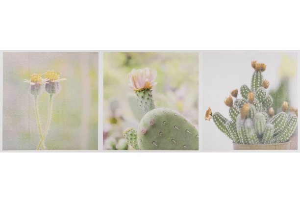 Obraz tlačený na plátne s motívom kaktusov dotvorí jedinečnú atmosféru domova. Obraz na stenu v podobe koláže má rozmer 90×30 cm.