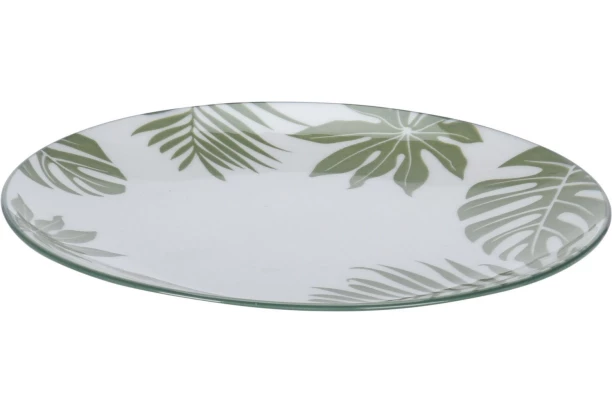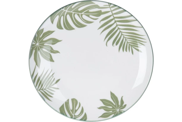 Dezertný tanier s motívom pôvabných zelených tropických listov dokonale ozdobí jedálenský stôl. Ideálna na lahodné torty alebo ľahké večere. Priemer 19 cm.