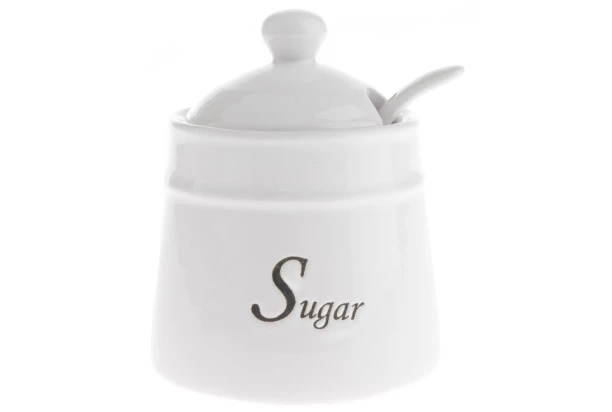 Cukornička s lyžičkou Sugar, bílá keramika