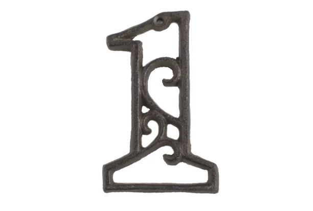 Liatinové číslo pre Váš dom, chatu alebo akúkoľvek inú budovu. Klasické číslo 1 z liatiny v hnedej farbe je nielen praktické na označenie Vášho domu, ale vďaka ozdobnému vzhľadu navyše dodá budove štýlový šmrnc. Domová číslica sa môže tiež použiť ako dekorácia do interiéru.