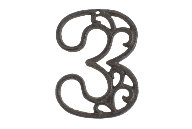 Liatinové číslo pre Váš dom, chatu alebo akúkoľvek inú budovu. Klasické číslo 3 z liatiny v hnedej farbe je nielen praktické na označenie Vášho domu, ale vďaka ozdobnému vzhľadu navyše dodá budove štýlový šmrnc. Domová číslica sa môže tiež použiť ako dekorácia do interiéru.