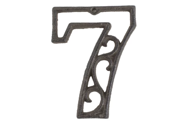 Liatinové číslo pre Váš dom, chatu alebo akúkoľvek inú budovu. Klasické číslo 7 z liatiny v hnedej farbe je nielen praktické na označenie Vášho domu, ale vďaka ozdobnému vzhľadu navyše dodá budove štýlový šmrnc. Domová číslica sa môže tiež použiť ako dekorácia do interiéru.