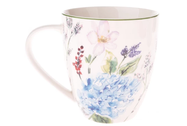 Elegantný porcelánový hrnček s objemom 450 ml ozvláštni posedenie s rodinou aj priateľmi. Romantický motív kvetinová záhrada, Vám rozradostný deň.
