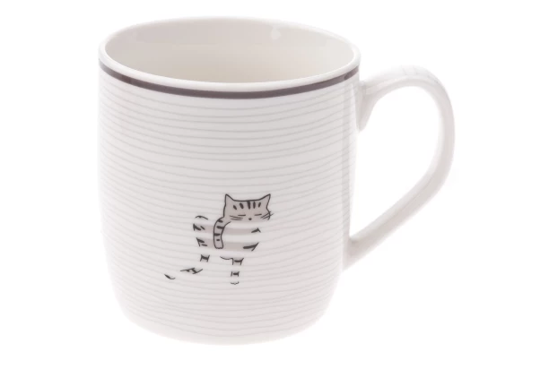 Porcelánový hrnček s motívom prúžkov a mačky je perfektný doplnok do kuchyne nielen pre milovníkov mačiek. Štýlový hrnček s objemom 345 ml sa hodí na čaj alebo kávu.