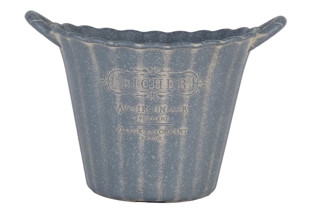Dekoratívny obal na kvetináč s ušami a francúzskym nápisom je vyrobený z odolného recyklovaného modrého plastu a je určený pre izbové aj vonkajšie rastliny. Ideálne do obývacej izby alebo vonkajšieho priestoru, ako je balkón, terasa, veranda.
