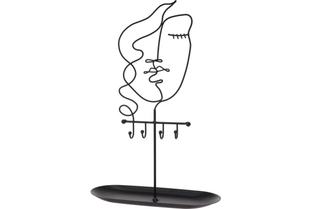 Originálny a štýlový stojan na šperky je vyrobený z čierneho kovového drôtu. Vďaka svojmu dizajnu so vzorom abstraktnej tváre sa stane držiak na šperky praktickým aj dekoratívnym doplnkom.