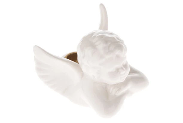 Porcelánový biely svietnik na čajovú sviečku v podobe anjela vytvorí v domácnosti príjemnú svetelnú atmosféru.
