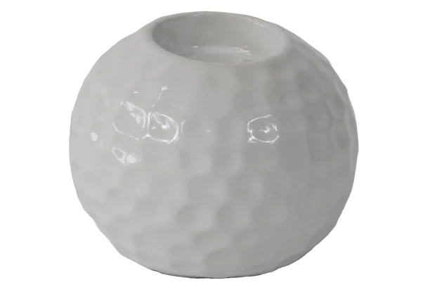 Keramický zaguľatený svietnik v lesklej bielej farbe s decentným štruktúrovaným povrchom pôsobí elegantne a s horiacou sviečkou vytvorí útulnú atmosféru v každej domácnosti. Priemer 10,5 cm.