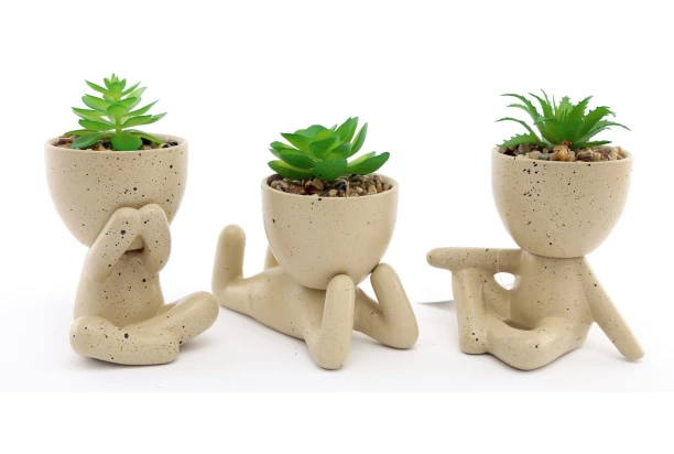 Umelý sukulent v roztomilom kvetináči v tvare panáčika vyzerá ako živá rastlina a dodá Vášmu domovu prirodzenú krásu a sviežosť. Dodávaný iba jeden sukulent v 3 rôznych variantoch.