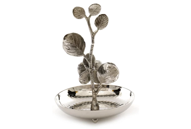 Dekoratívna šperkovnica v tvare stromu s listami je vyrobená z kovu v striebornej farbe. Praktický držiak oceníte na odkladanie šperkov, ako sú retiazky, náušnice, prstene atď. Výška 17 cm.