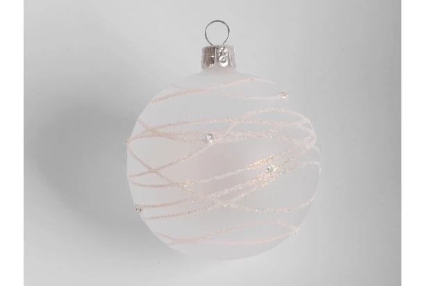 | Názov | sklenená guľa 7 cm, biela s vlnkami |