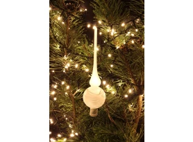 Sklenená biela vianočná guľa s priemerom 7 cm, očarí svojim vlnitým vzorom. Táto krásna vianočná ozdoba, skvelo doladí sviatočnú atmosféru.