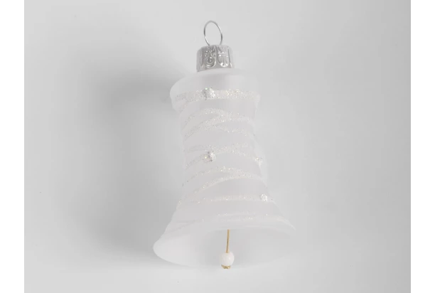 Vianočná ozdoba sklenený zvonček, biely s vlnkami