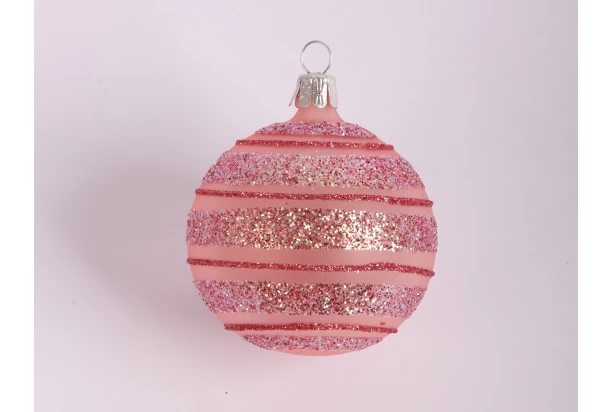 Sklenená ružová vianočná guľa s priemerom 6 cm očarí svojim trblietavým vzorom. Táto krásna vianočná ozdoba skvele doladí sviatočnú atmosféru.