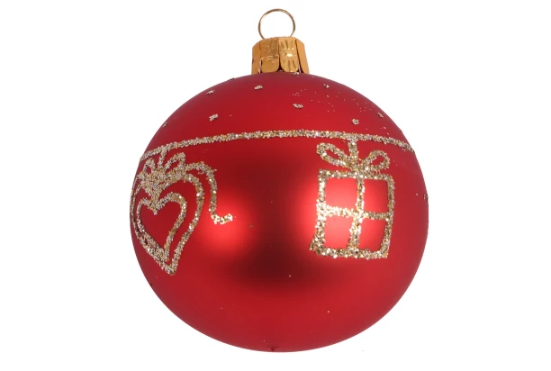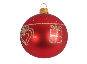 | Názov | sklenená guľa 7 cm, červená, darček a srdiečko |