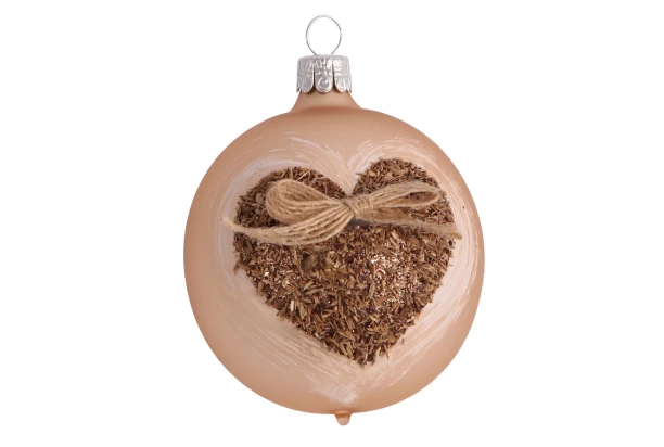 Vianočná ozdoba béžová guľa so srdcom 7 cm, sklo