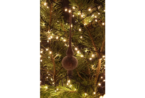 Sklenená vianočná špica v hnedej farbe, rozžiari Váš stromček, ktorý dovedie k dokonalosti a doladí úplnú sviatočnú atmosféru v každom domove. Jednoguľová špička s výškou 28 cm skrátka nesmie chýbať.